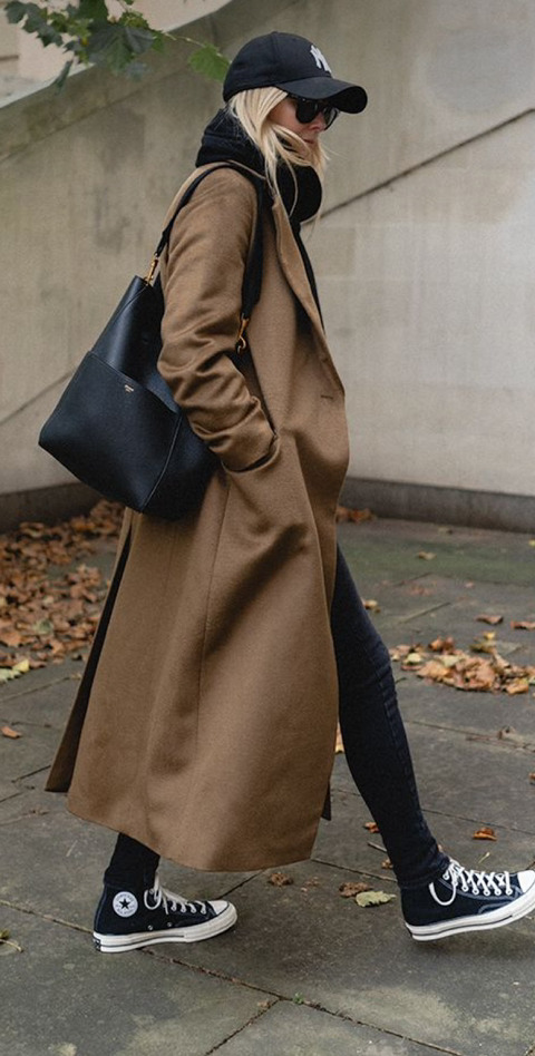 코트에 볼캡 코디 맘에 듦