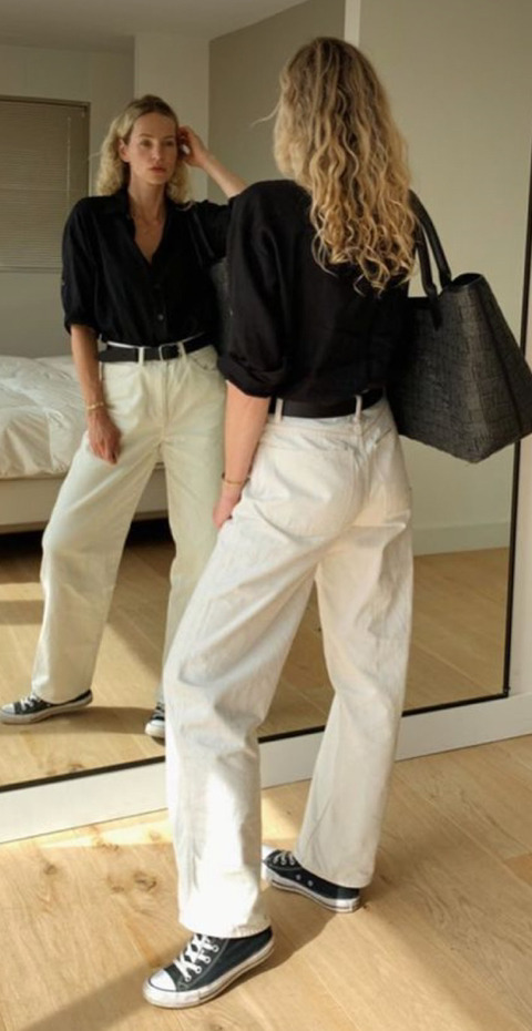 아래는 컨버스 블랙 하이탑을 화이트 팬츠에 코디한 컷들