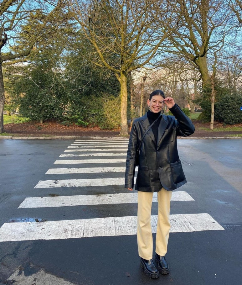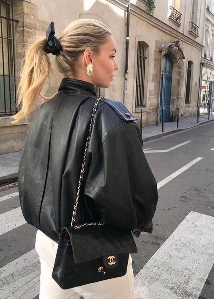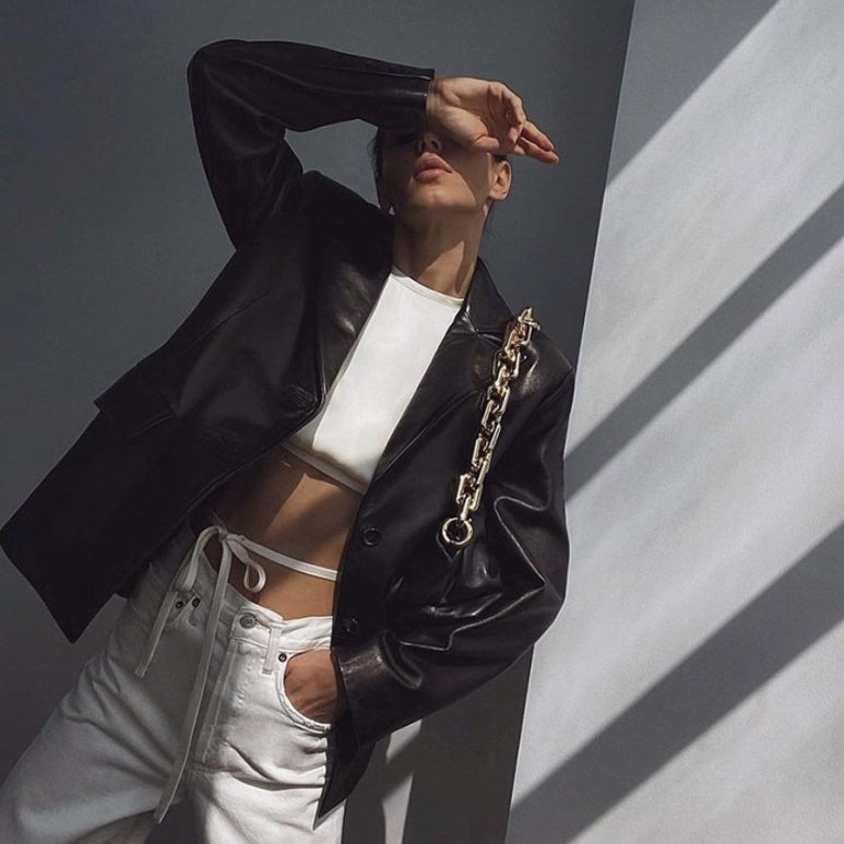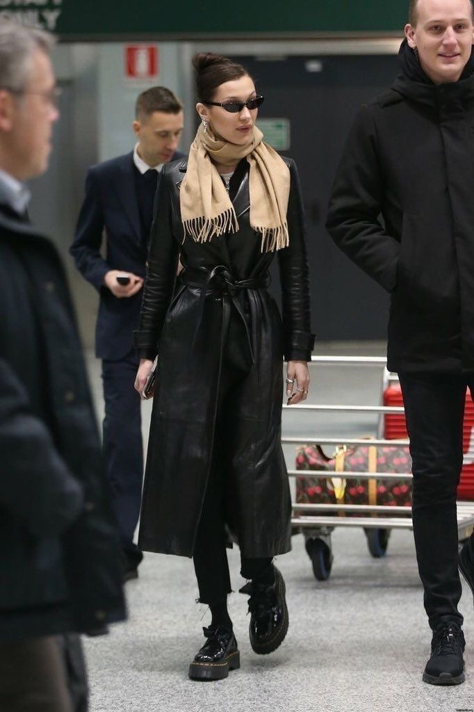 이제 벨라 하디드의 가죽 자켓 코디를 보자