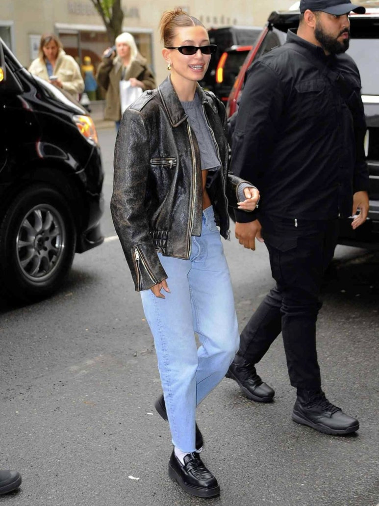 헤일리 비버는 따로 게시물을 파야 할 만큼 가죽 자켓 코디가 많다