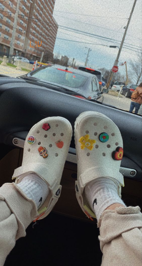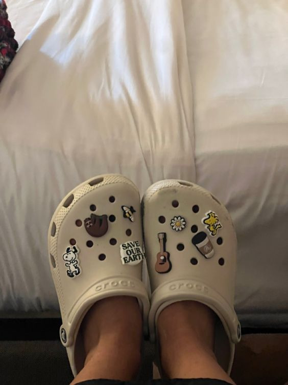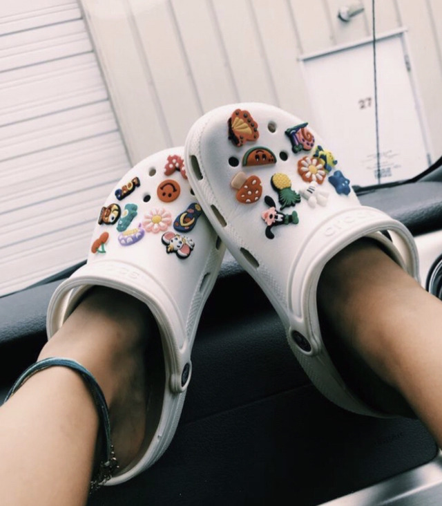 심플한 화이트 크록스에 지비츠 하나만 해도 예쁘네