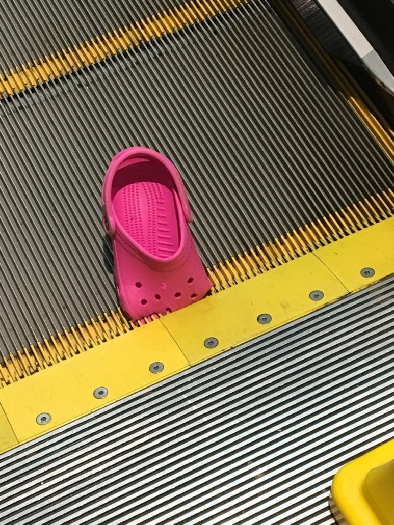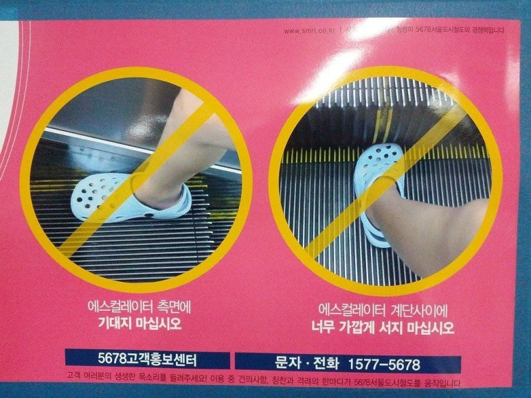 에스컬레이터 앞과 옆 틈에 아주 쉽게 끼어 들어갈 수 있고