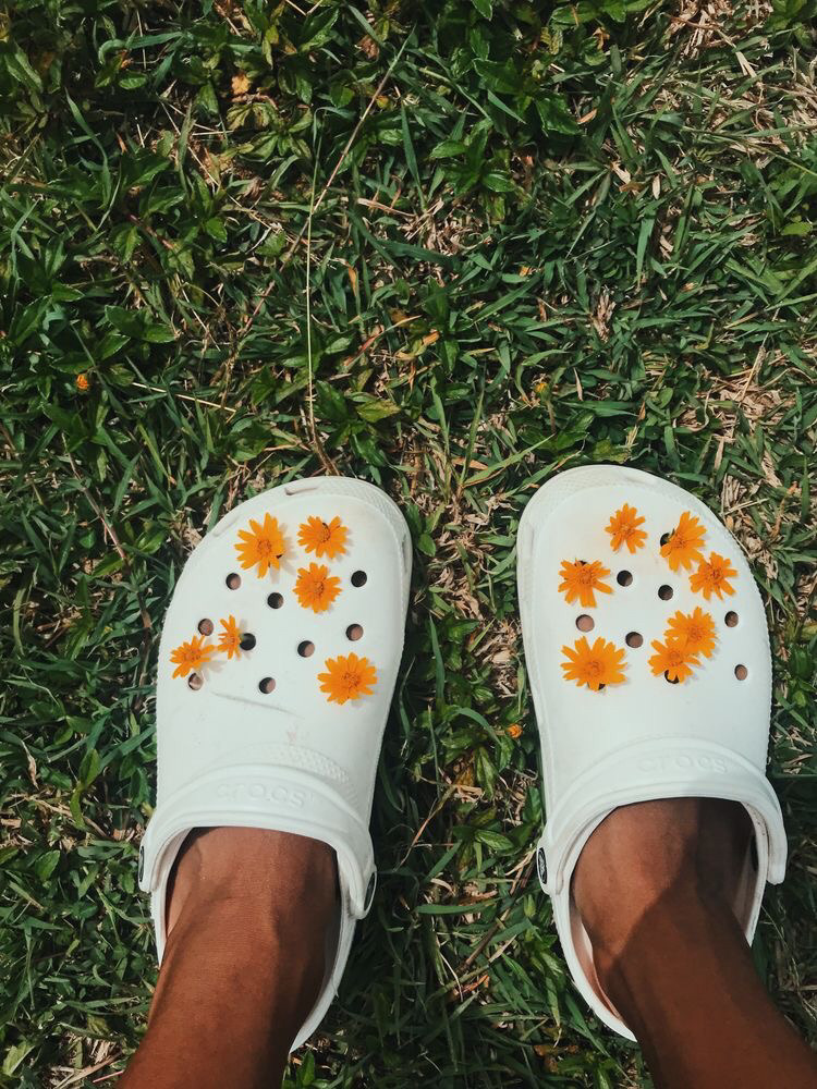 크록스 구멍에 생화 꽃을 꽂다니 쏘 로맨틱