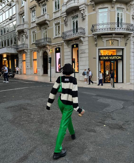 초록 색 바지 코디는 마치 보테가 베네타 같음