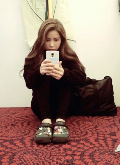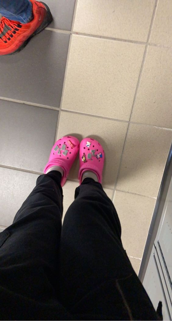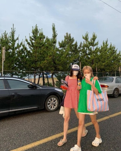 왼쪽은 누군지 모르겠지만 오른쪽은 유명한 블랙핑크 지수 크록스 착샷 코디컷