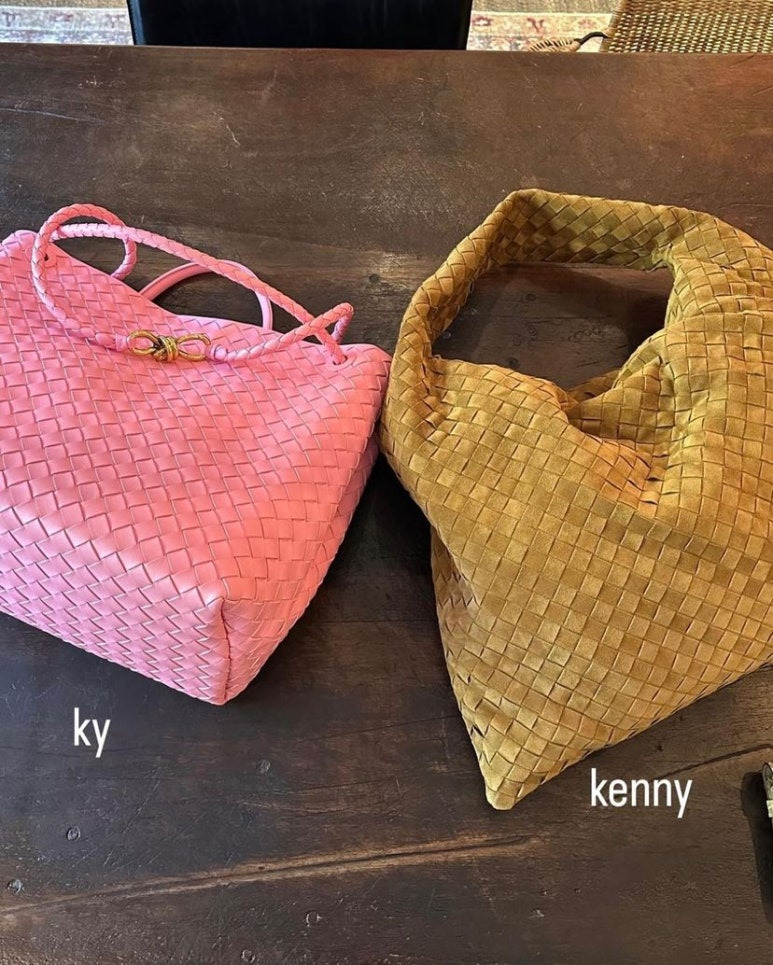 카일리는 핑크 컬러 보테가 베네타 안디아모 백
