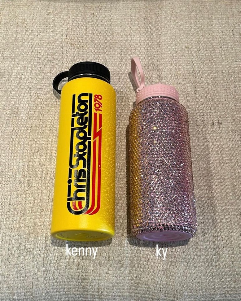켄달은 컨트리 가수 크리스 스테이플턴 굿즈로 보이는 Chris Stapleton 1978 이라고 쓰여진 노란색 텀블러