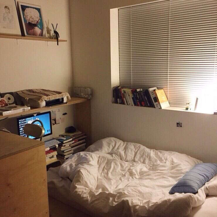 누워서도 작업하는 대학생의 책상 겸 침대