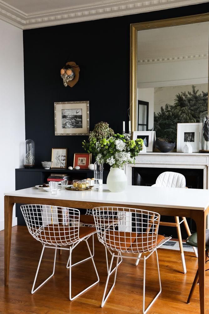 어두운 컬러 벽도 다이닝 룸에 잘 어울림