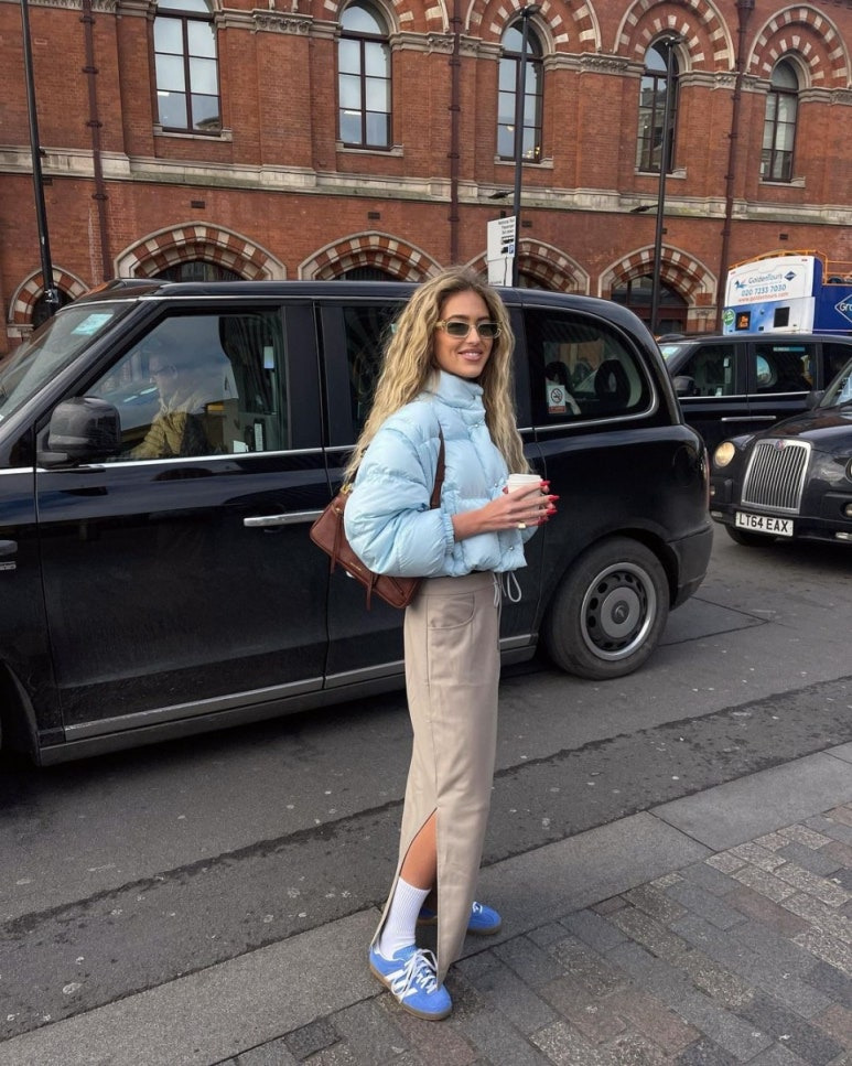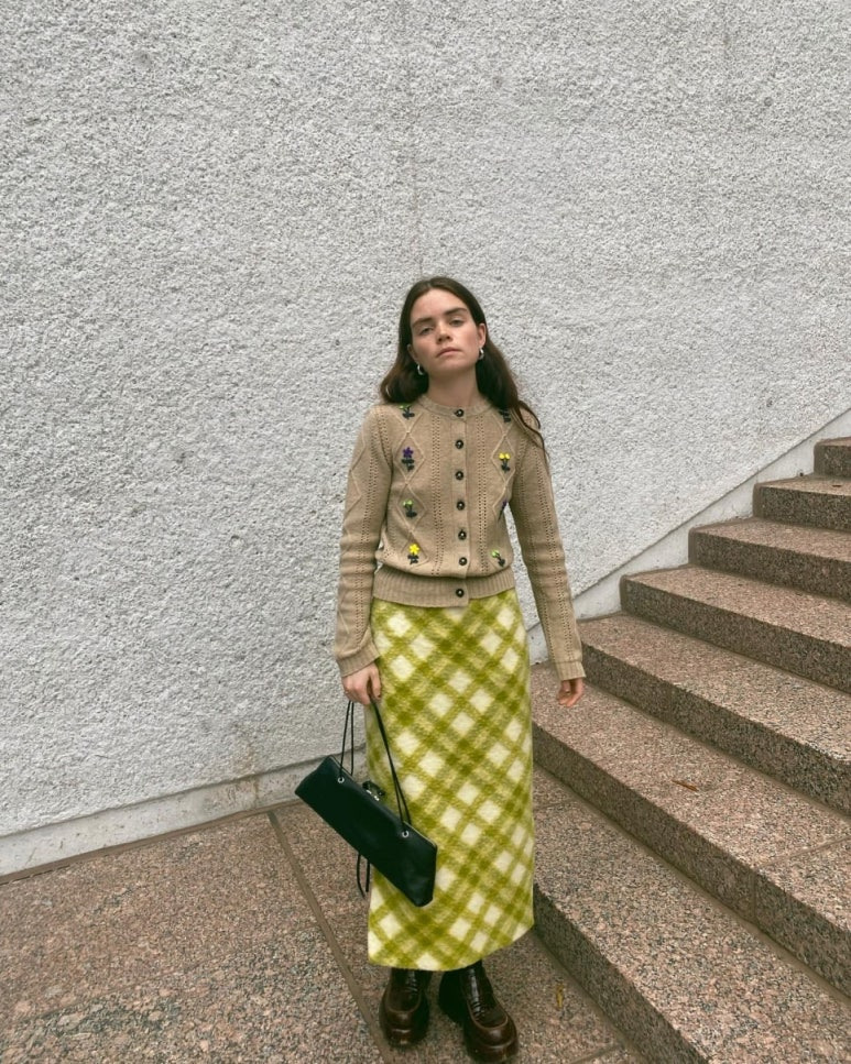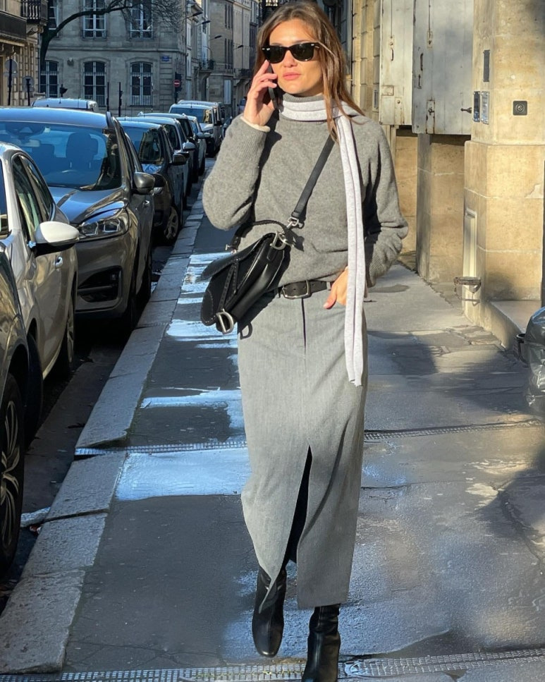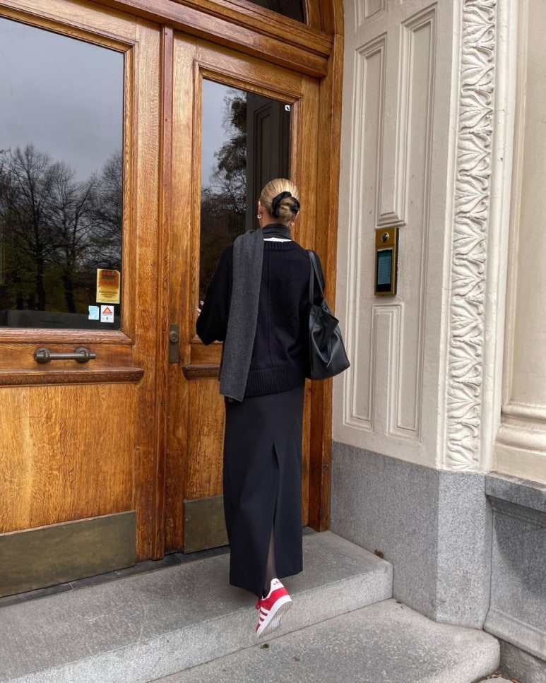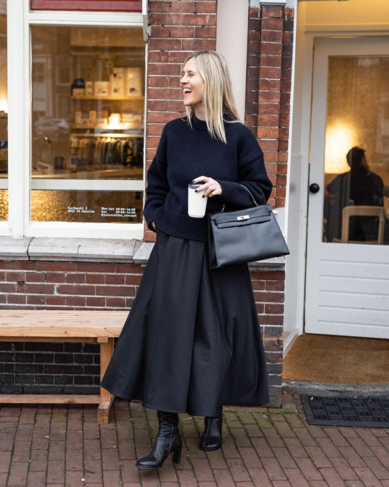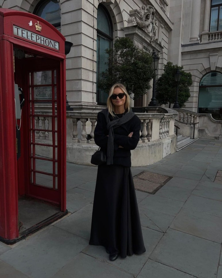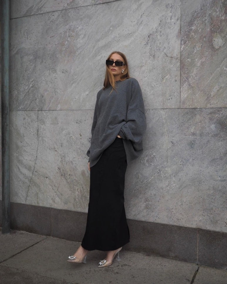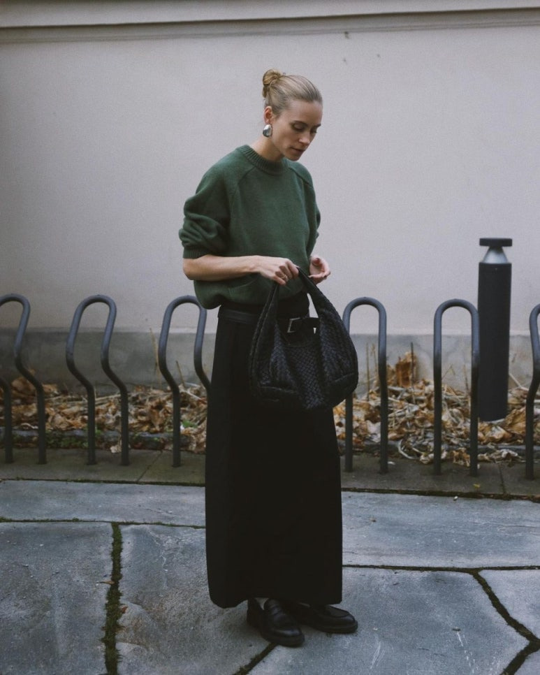 덜 추운 날이나 가을에는 청키 한 니트와 함께하면 좋은 롱 스커트