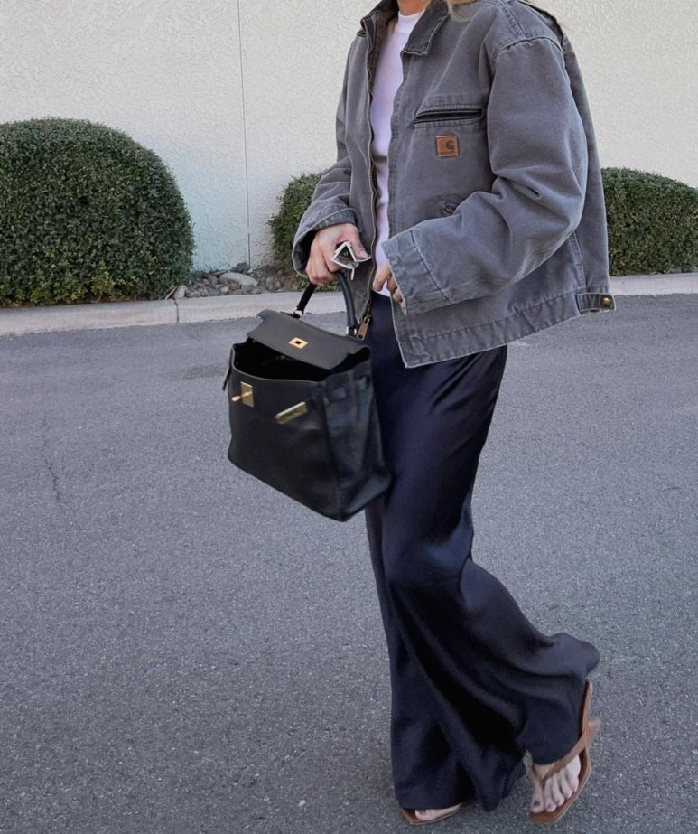 새틴 실크 소재의 롱스커트의 조합이 너무 좋다