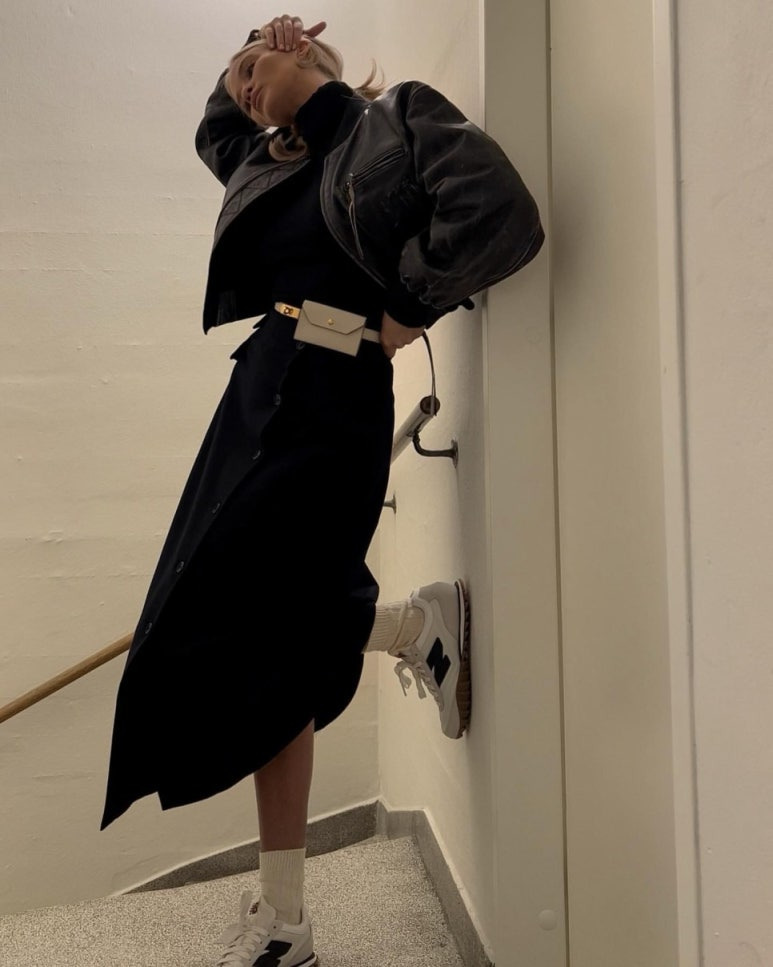 이상하게 찾다 보니 롱스커트는 가죽재킷과 코디된 이미지가 많음