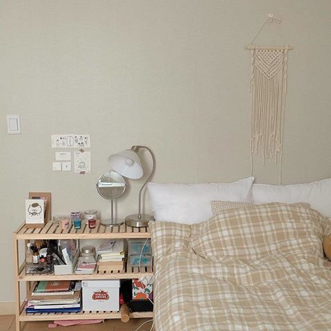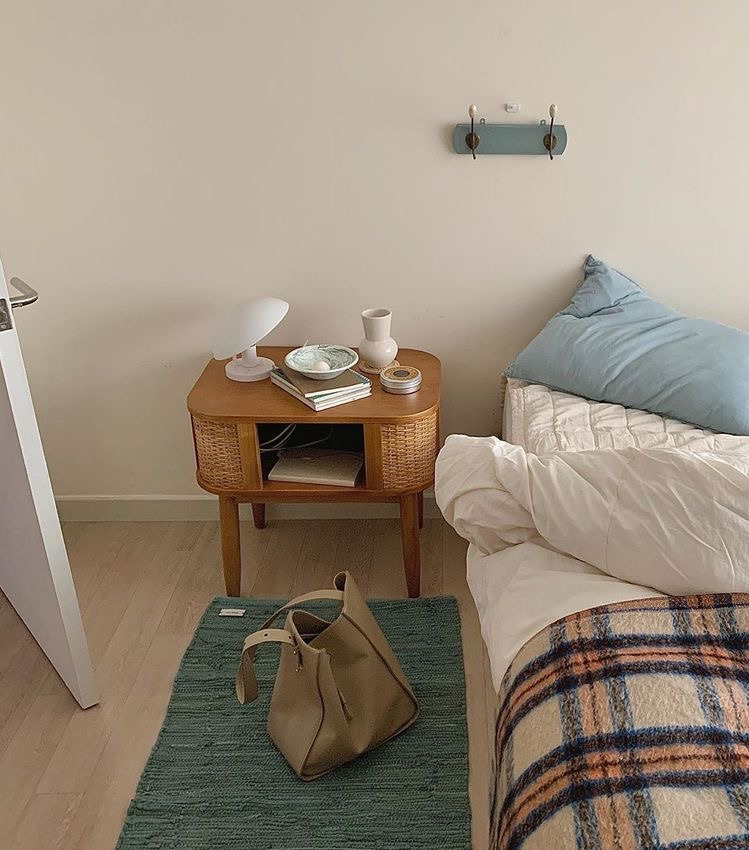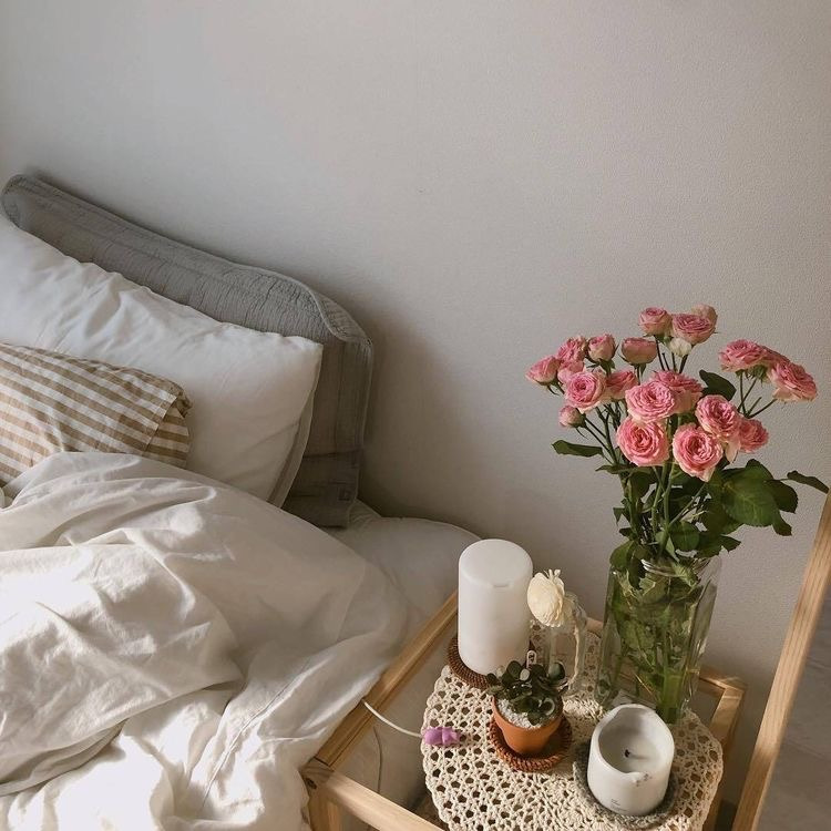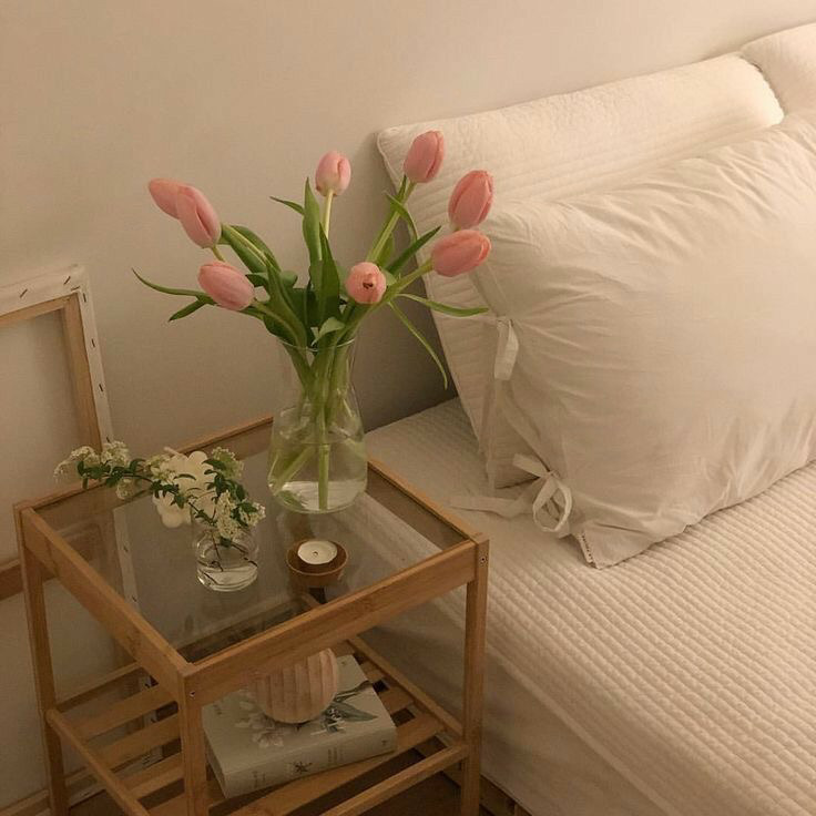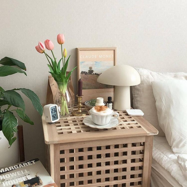 침대 옆 협탁이 만들어주는 아늑한 공간을 잘 활용해보면 좋겠다