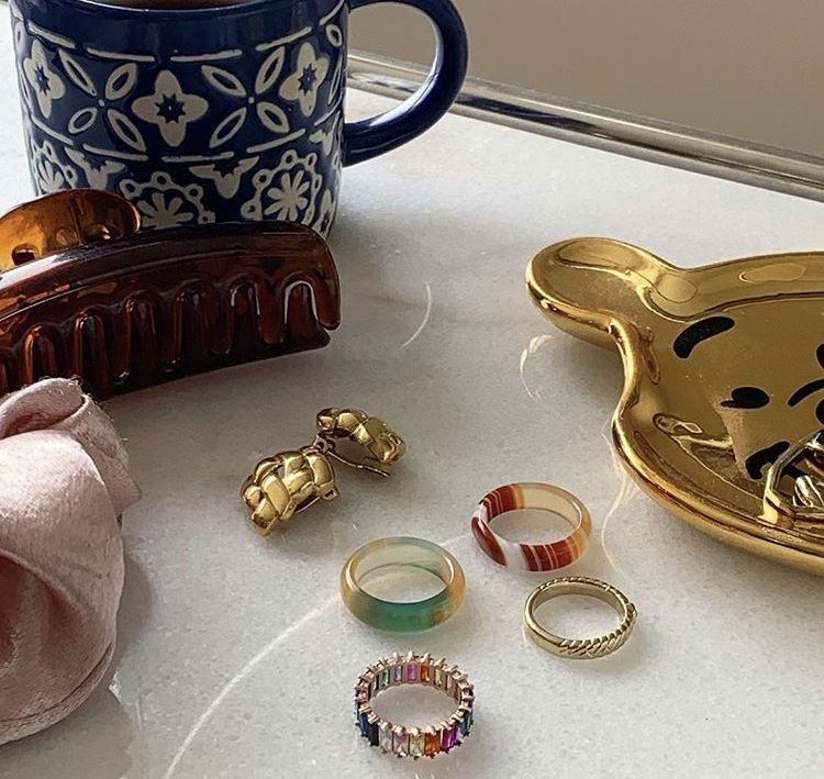 접시에 주얼리와 헤어 악세사리를 넣어두면 좋다