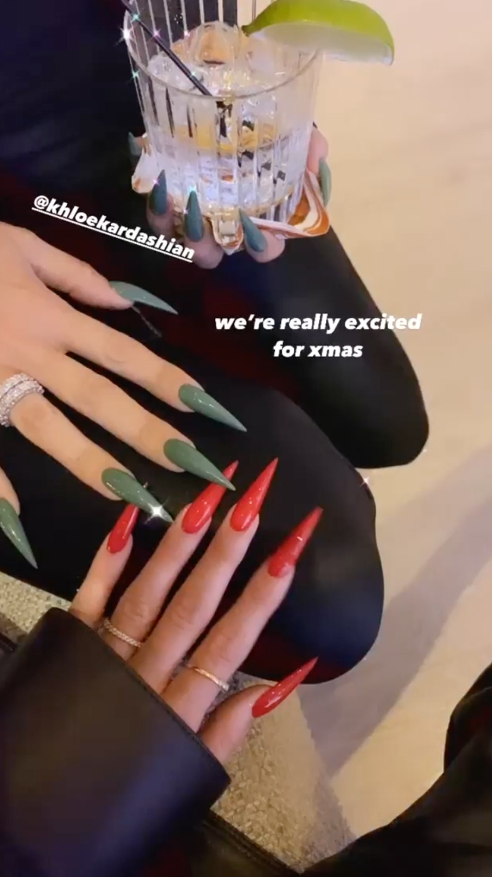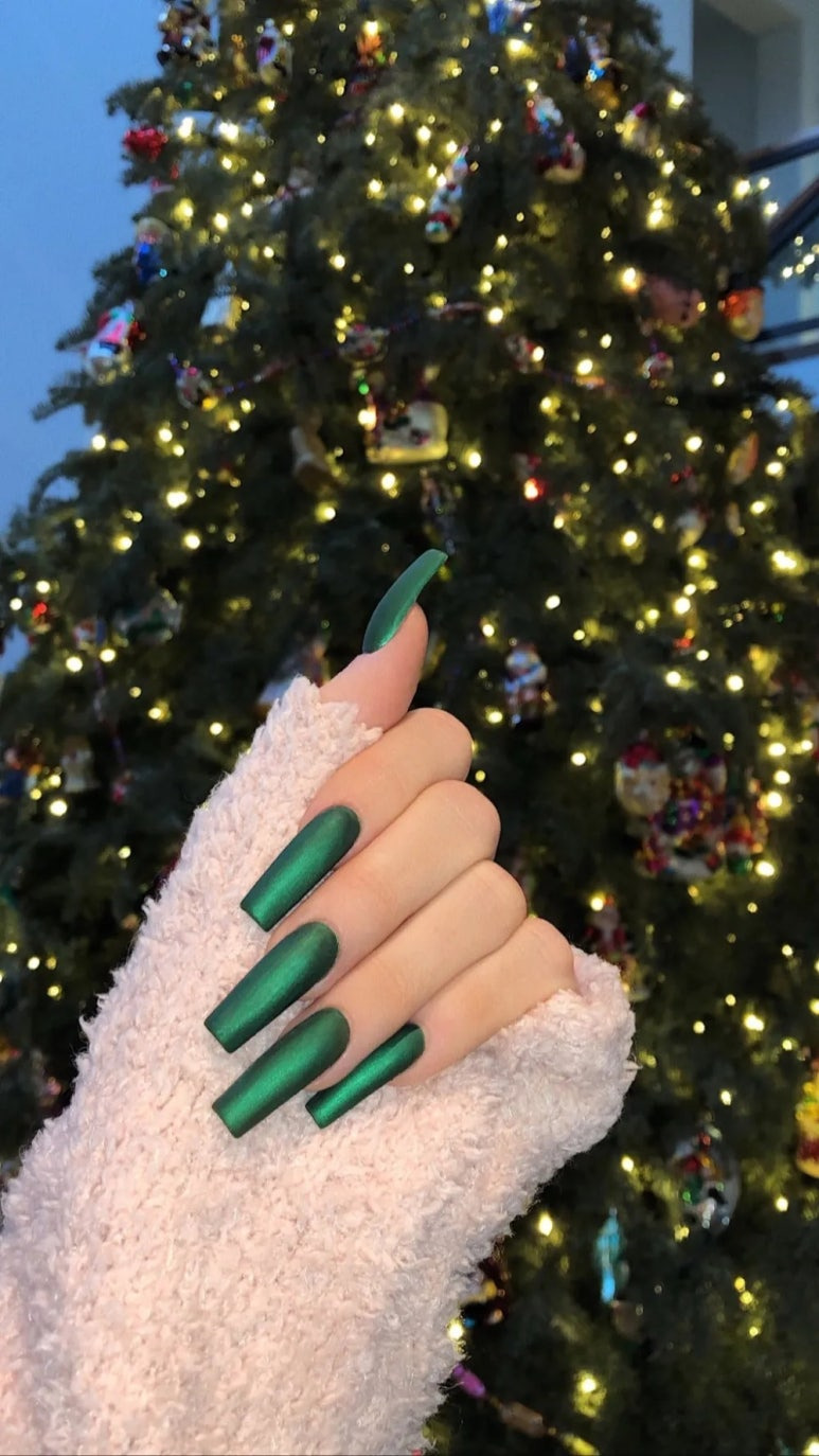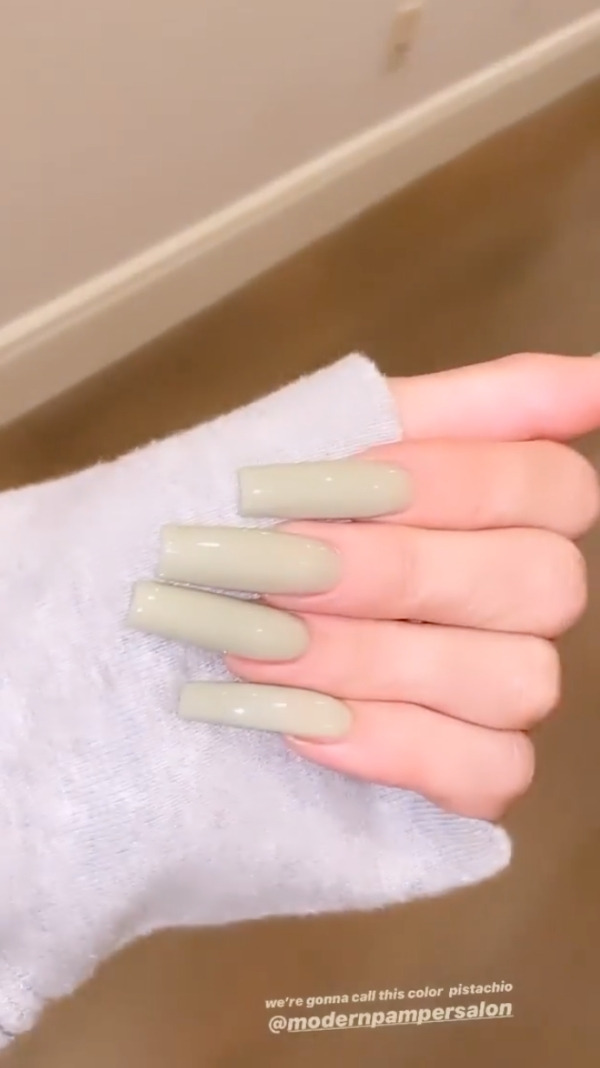 금속 메탈 느낌의 초록색 네일을 선택한 카일리 제너