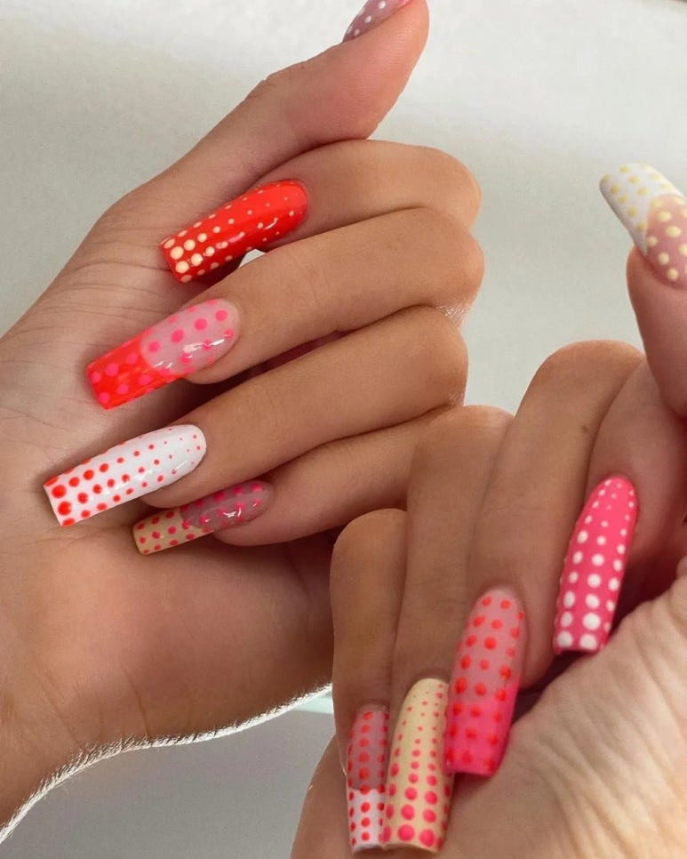 도트 무늬로 꾸며진 네일