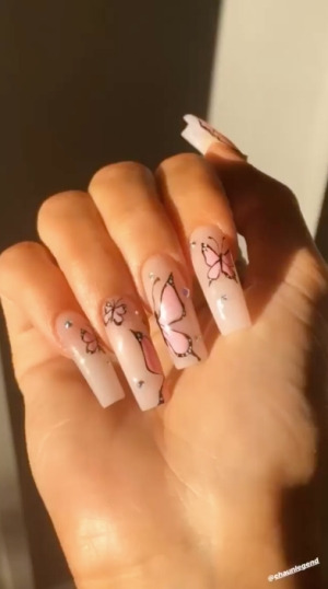 딸 스토미를 위한 핑크 나비 네일아트