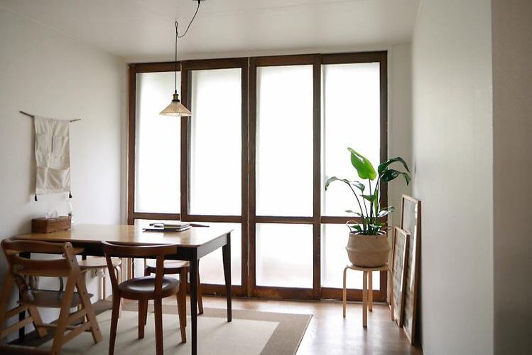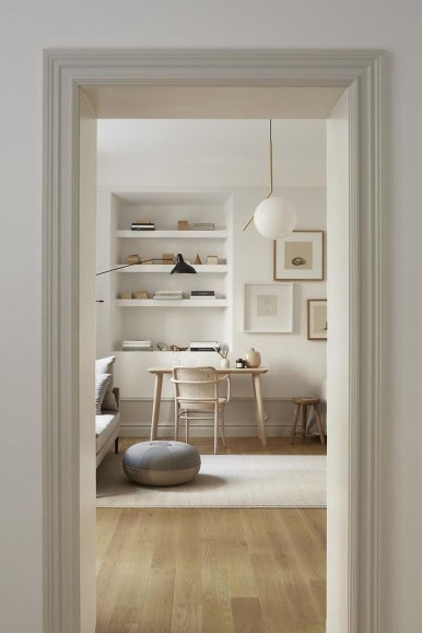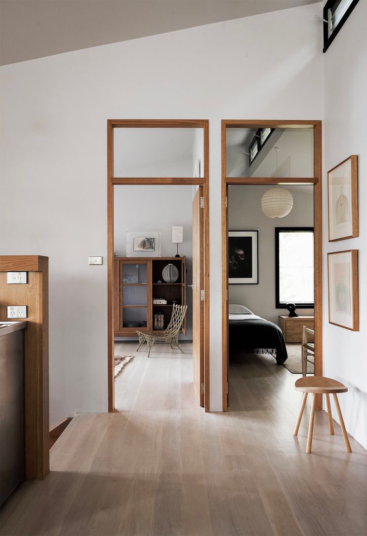 흰 벽에 프레임과 문까지 우드톤으로 맞춰진 집