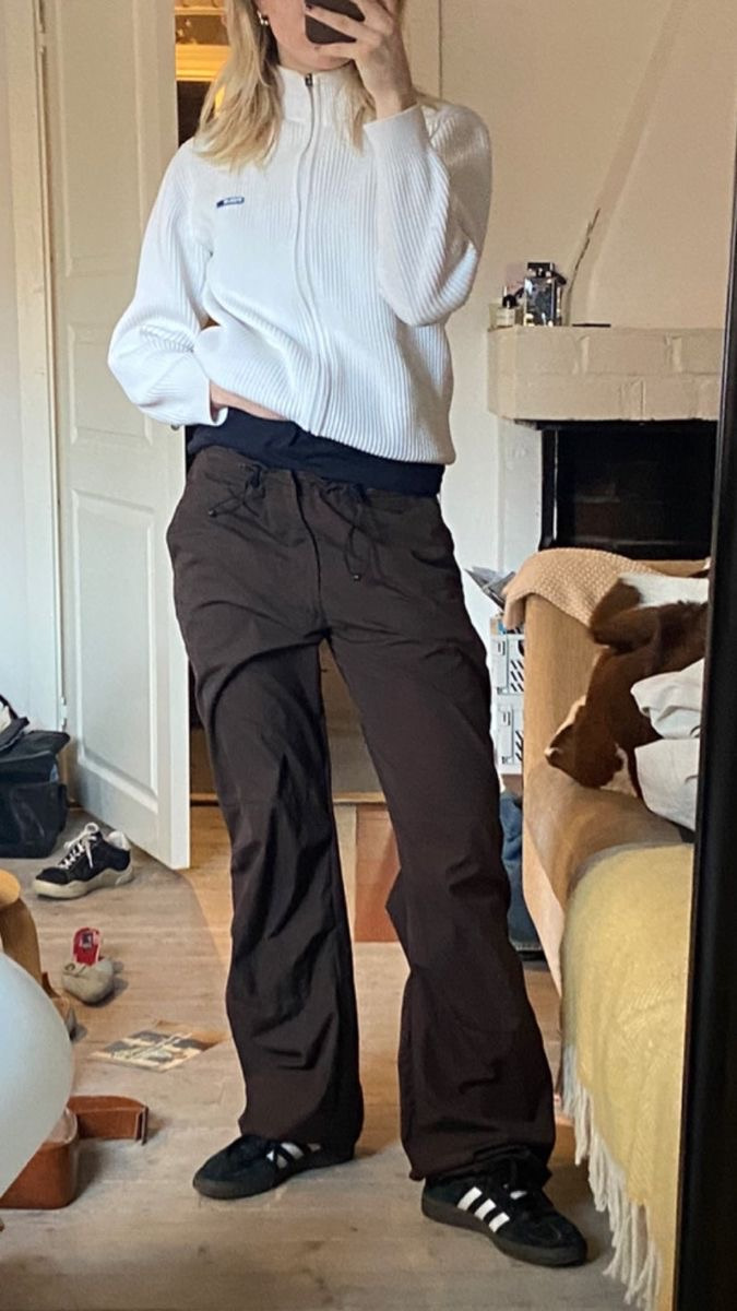 로우 라이즈 클래식 데님 팬츠 혹은 파라슈트 팬츠에 크롭 탑 코디가 유행하면서