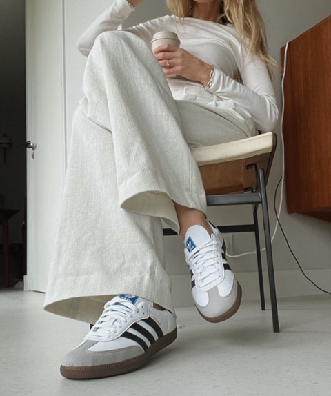 다양한 컬러 조합보다는 화이트 삼바의 경우 다양한 아웃핏에 매치하기 쉽고