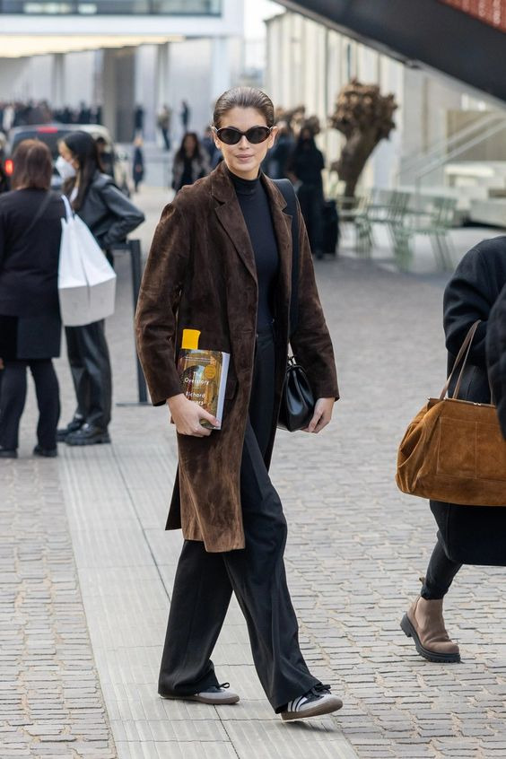 스웨이드 소재가 들어있어 가을, 겨울 코트에도 이질감 없이 매치됨