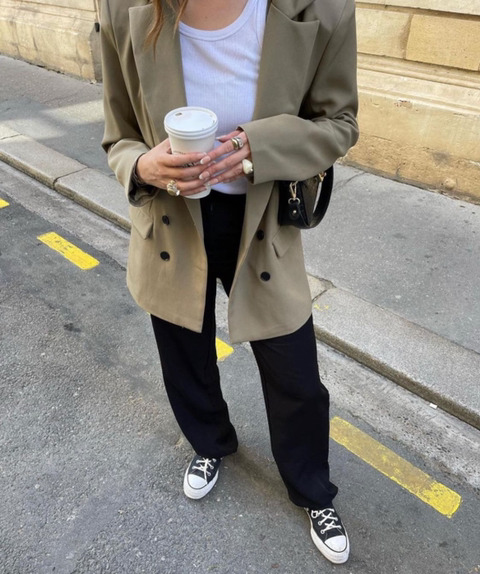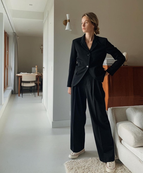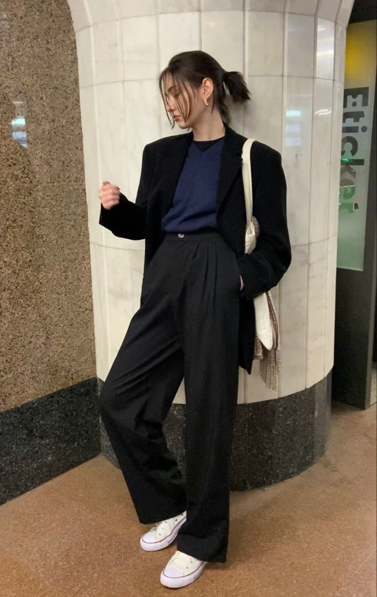 흰색 아이보리 컨버스는 블랙 슬랙스에 찰떡
