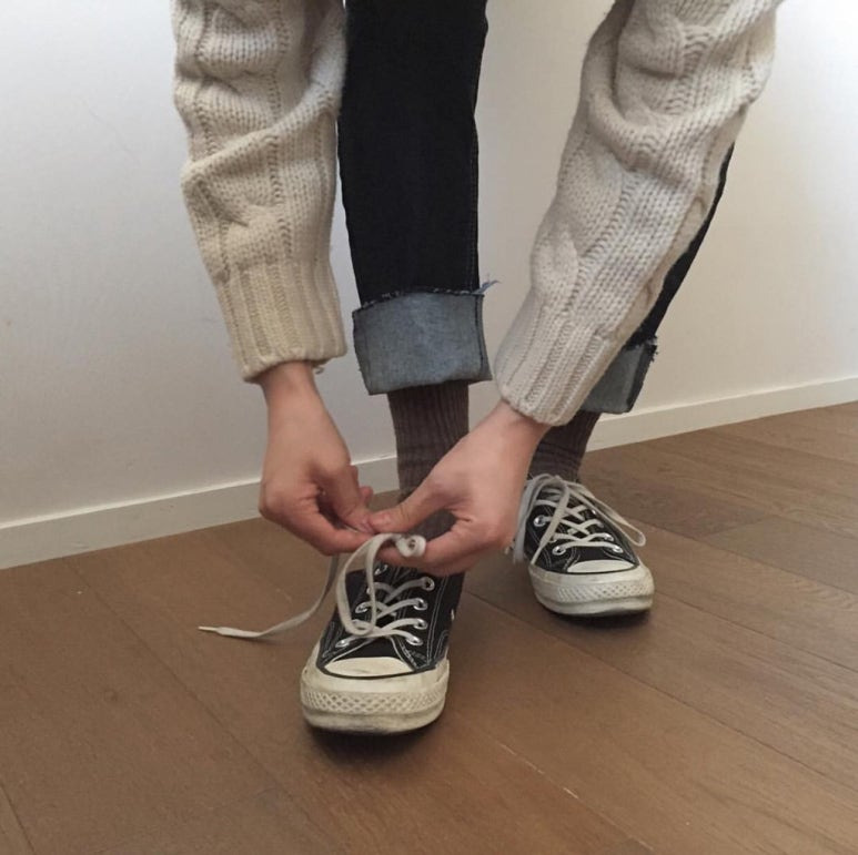 검정색 스타킹 (검스) 에 새파란 컨버스 로우