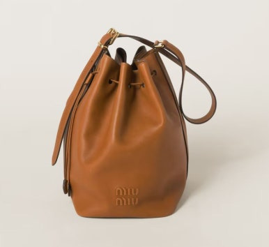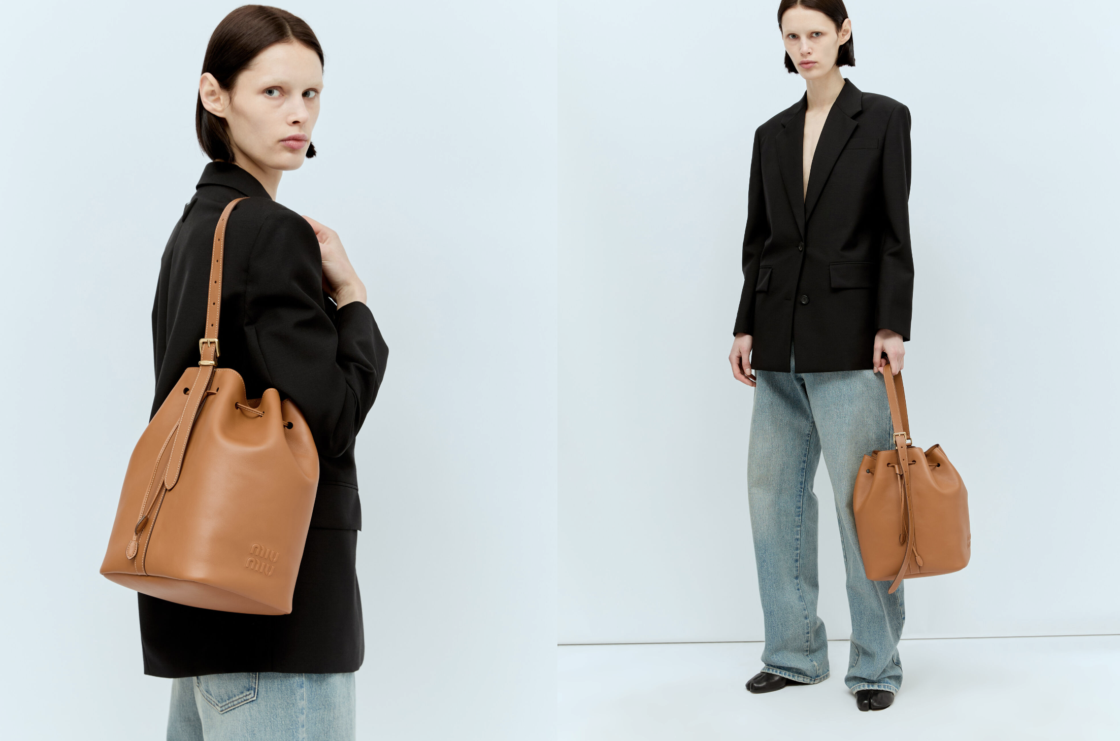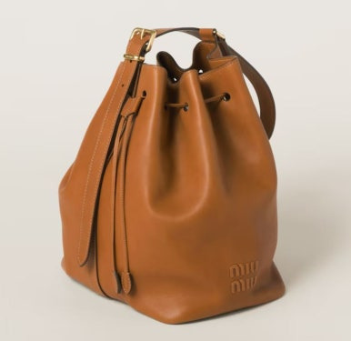 특히 눈에 띈 아이템 중 하나는 브라운 컬러의 가죽 버킷백으로 미우미우의 신상임