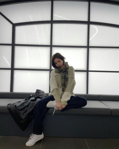 블핑 제니 사복 패션 with 목도리
