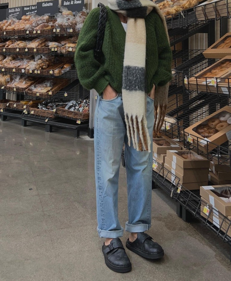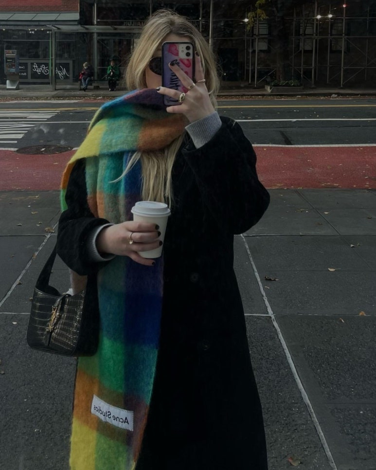 다양한 디자인과 소재의 스카프 중에서 특히 아크네에서 나온 큼직한 체크무늬의 목도리가 최근 많이 주목을 받고 있다