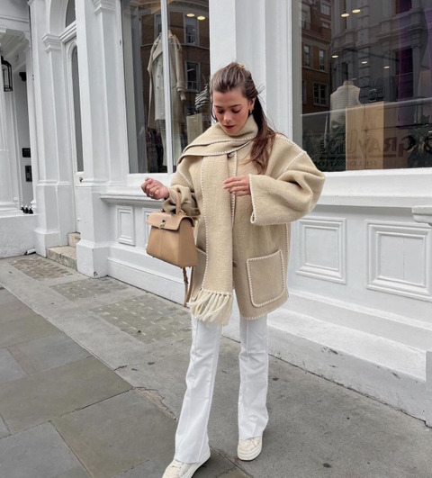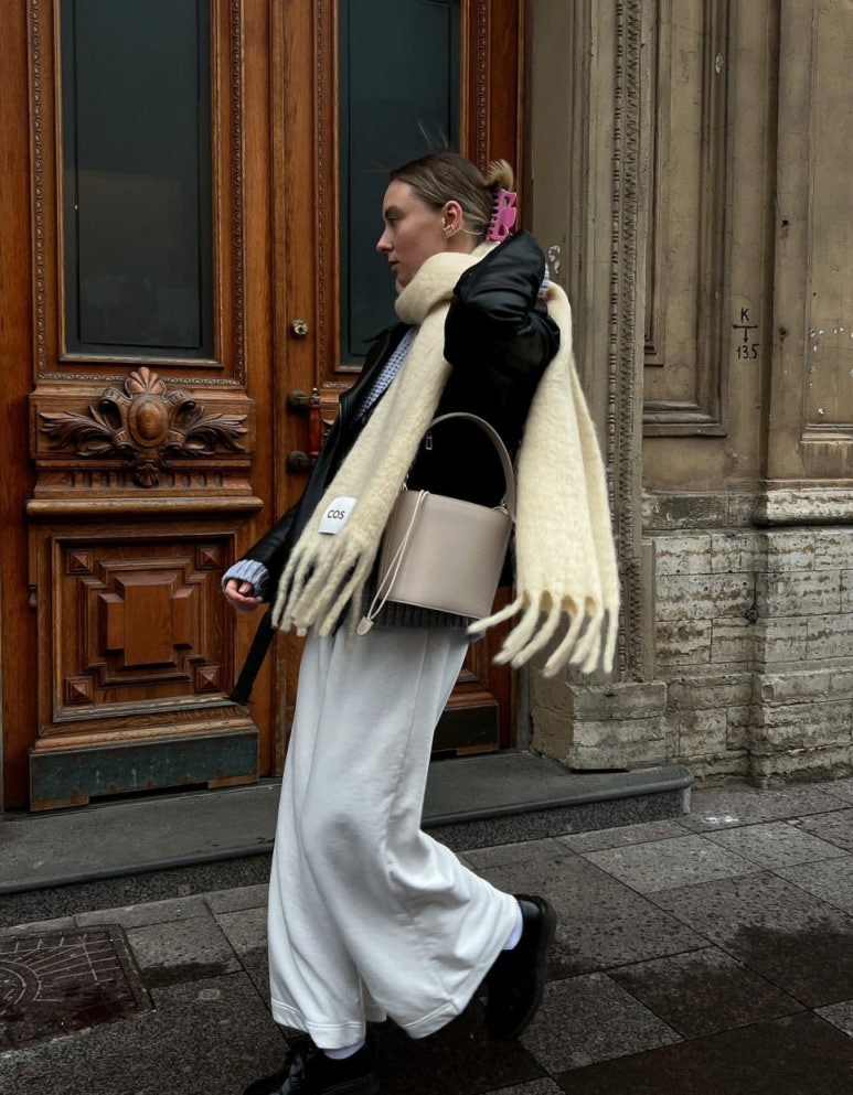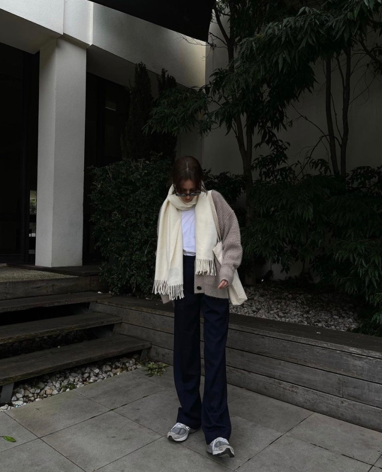 아이보리색 밝은 목도리로 톤업