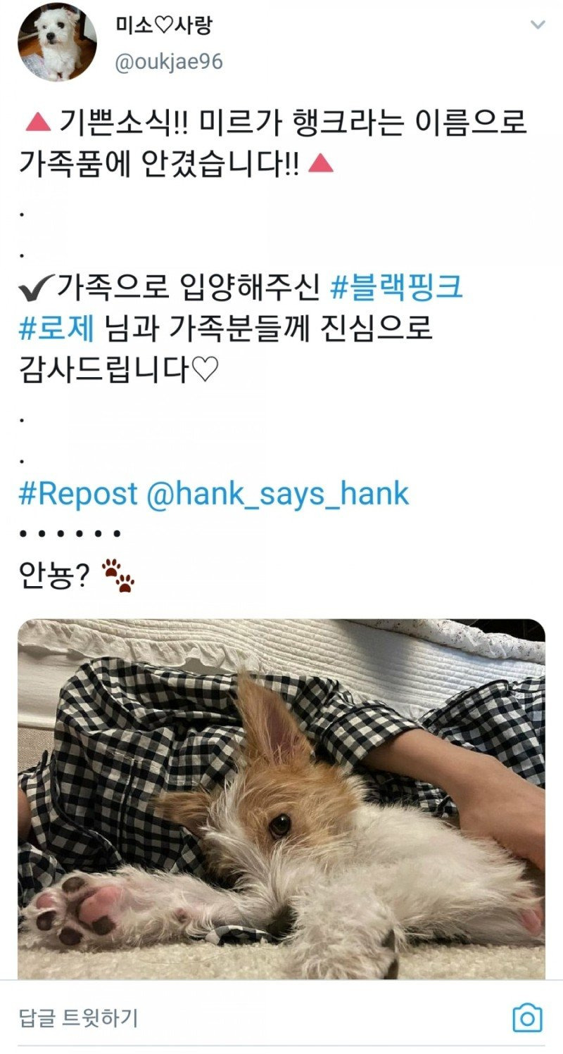 어느날 로제 인스타에 올라온 강아지와 강아지 계정