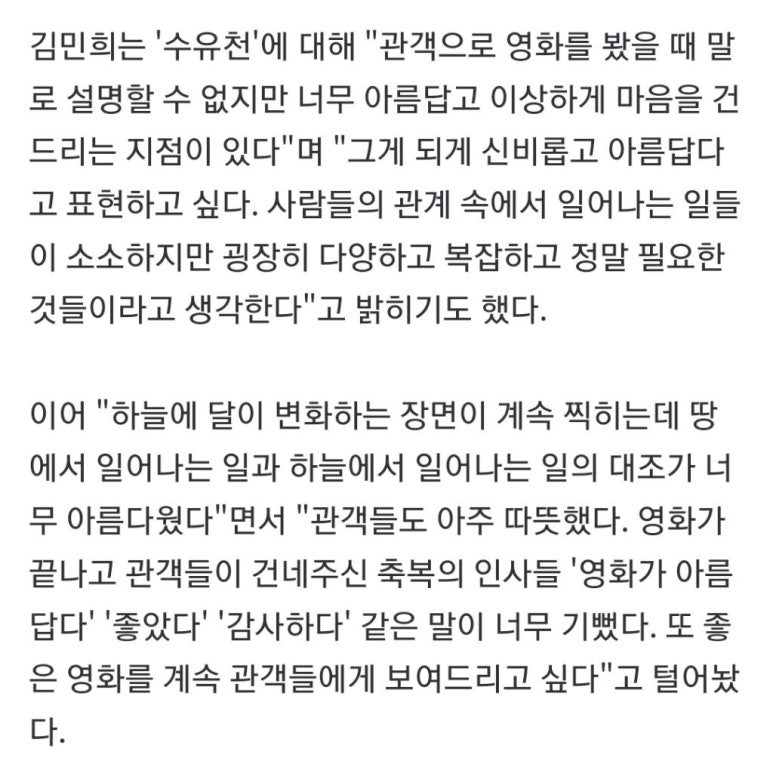 임신한 상태로 상을 받고 너무 기뻤을 그녀의 마음이 전해지는 듯해 기분이 묘하게 뒤섞였다는 반응