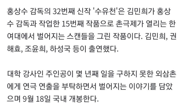 영화계에서 끊임없는 논란을 일으키고있는 홍상수과 김민희가 부모가 된다는 충격적인 소식이 전해졌다