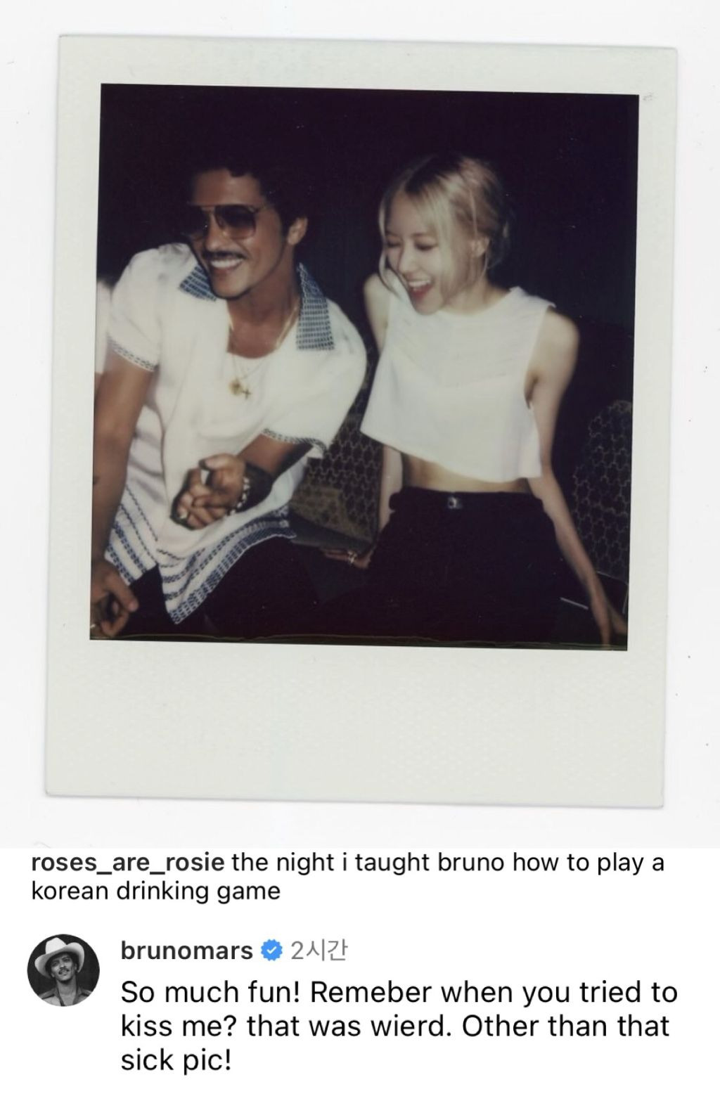 그럼 마지막으로 브루노 마스 인스타에 올라온 사진으로 마무리